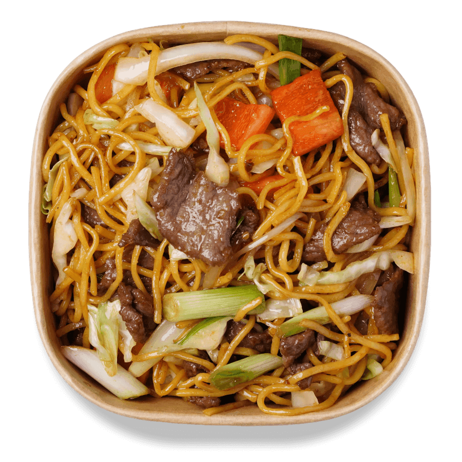 Tender beef stir-fried with chewy noodles and crisp veggies — light, savory, and full of wok flavor. A classic chow mein with a hearty upgrade.
