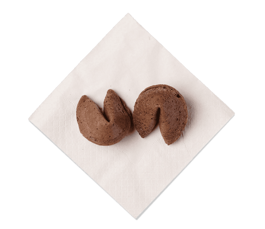 A playful spin on the original — crisp cookies baked with rich chocolate flavor and a hidden fortune inside. Sweet, crunchy, and full of luck.