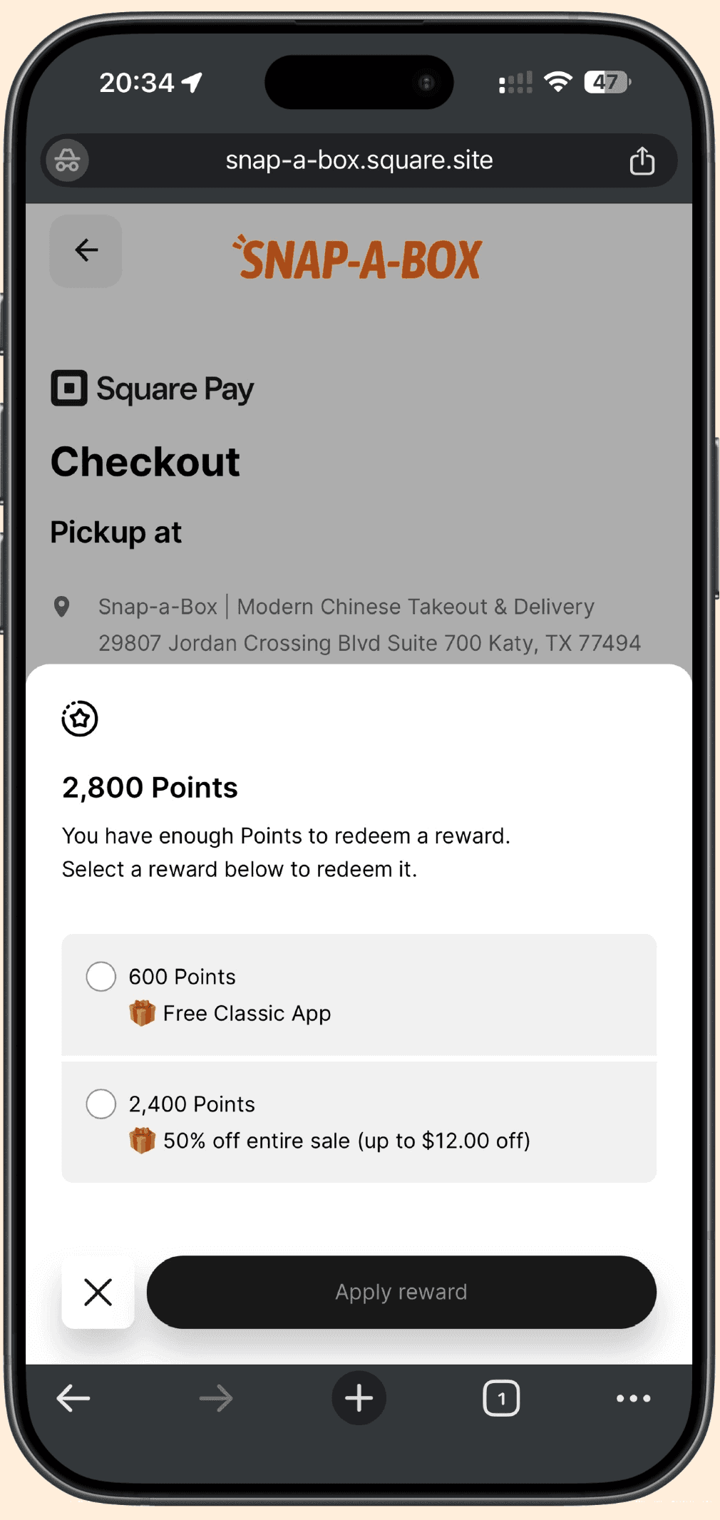 Make sure your order includes eligible items, then select and apply your rewards.