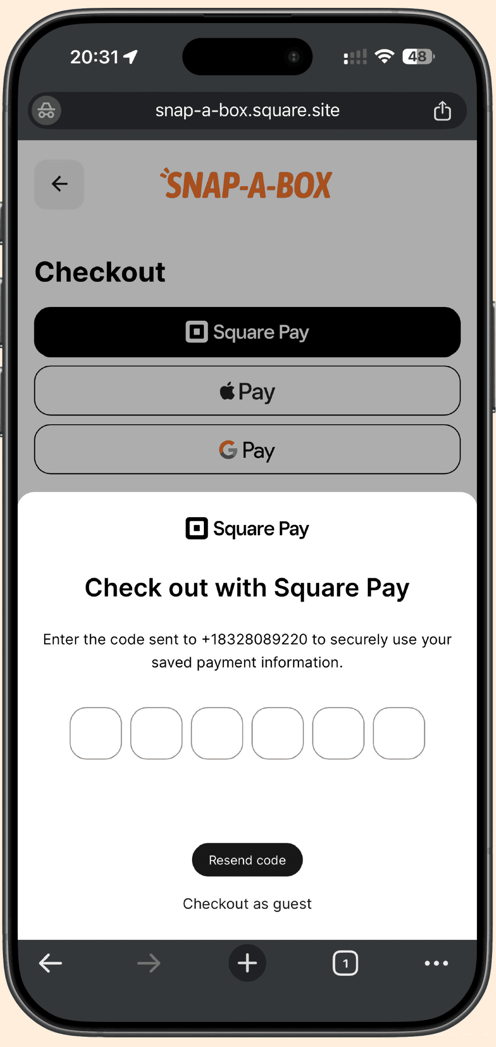 Enter the verification code sent to your cellphone.