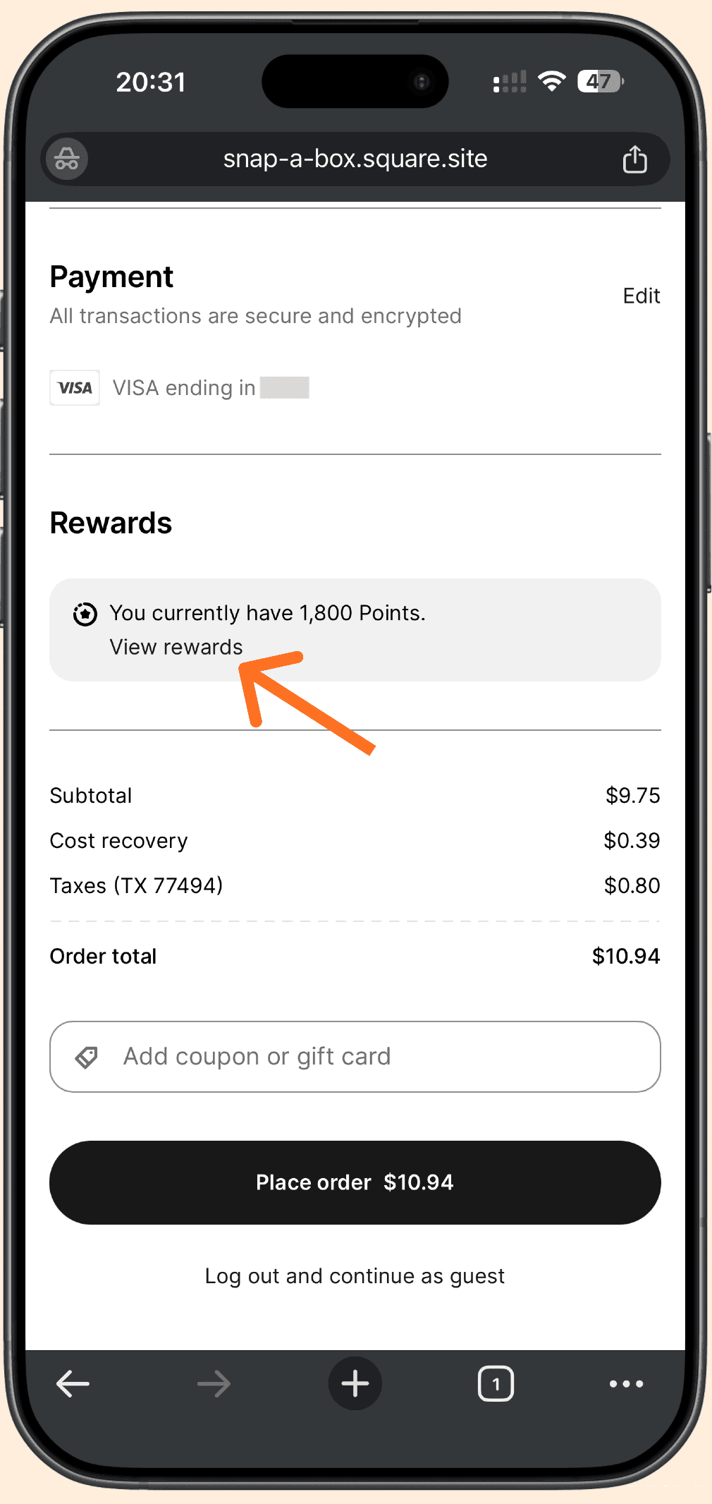 At checkout, enter the cellphone number associated with your rewards account.